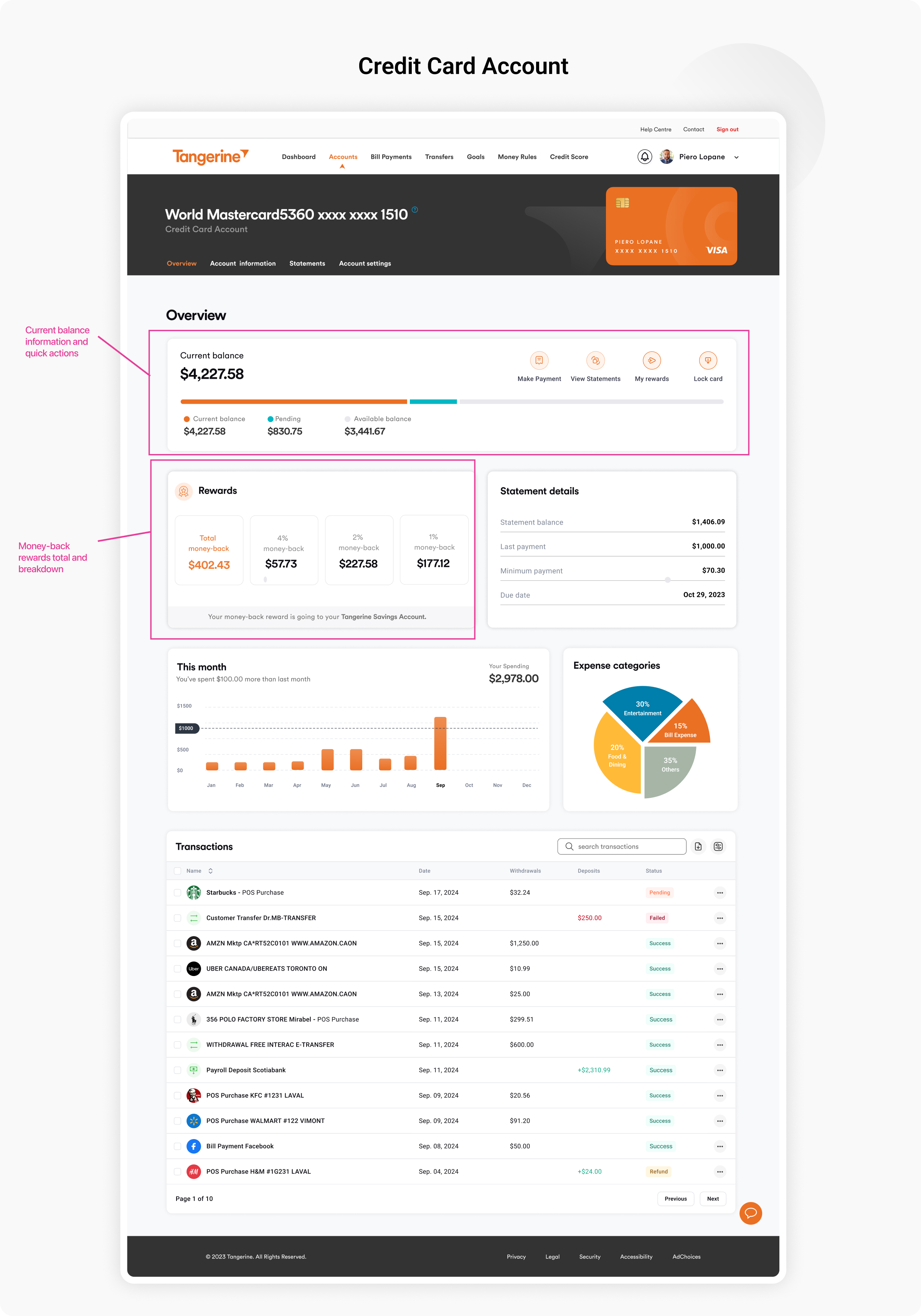 La nouvelle expérience utilisateur de Tangerine a été reconçue de fond en comble, fortement soutenue par une recherche utilisateur approfondie et alimentée par une forte empathie utilisateur. Les sessions collaboratives ont été essentielles pour identifier les personas utilisateurs et les cartes de parcours client. Les solutions de design innovantes ont conduit à la création de nouvelles fonctionnalités qui ont efficacement résolu les problèmes des utilisateurs, améliorant l'expérience utilisateur tout en maintenant l'alignement entre les objectifs commerciaux de Tangerine et les besoins des utilisateurs.