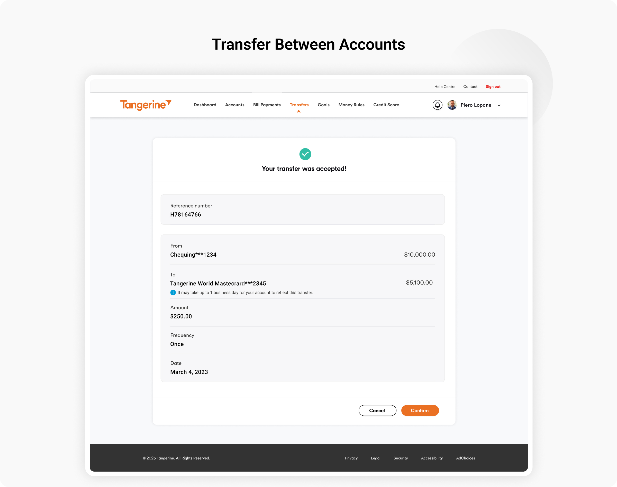 Pour étendre la valeur de la transformation web de Tangerine au-delà du design de surface, nous avons modernisé l'architecture sous-jacente de la plateforme bancaire—améliorant les performances, la scalabilité et l'expérience utilisateur sur toutes les fonctionnalités bancaires. La modernisation de la plateforme a introduit des temps de chargement plus rapides, une meilleure réactivité et une fiabilité améliorée—permettant aux utilisateurs d'accomplir des tâches bancaires rapidement et de manière fiable sans délais ni erreurs.