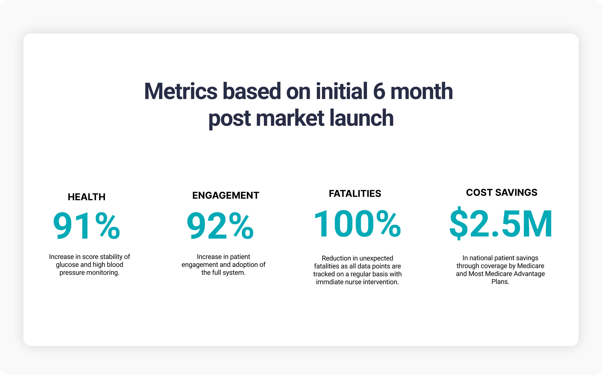 These insights shaped our approach: creating a data-driven care platform that collects 1000x more data, enables real-time monitoring with critical alerts, and provides personalized care plans through frequent nurse coaching and support.
