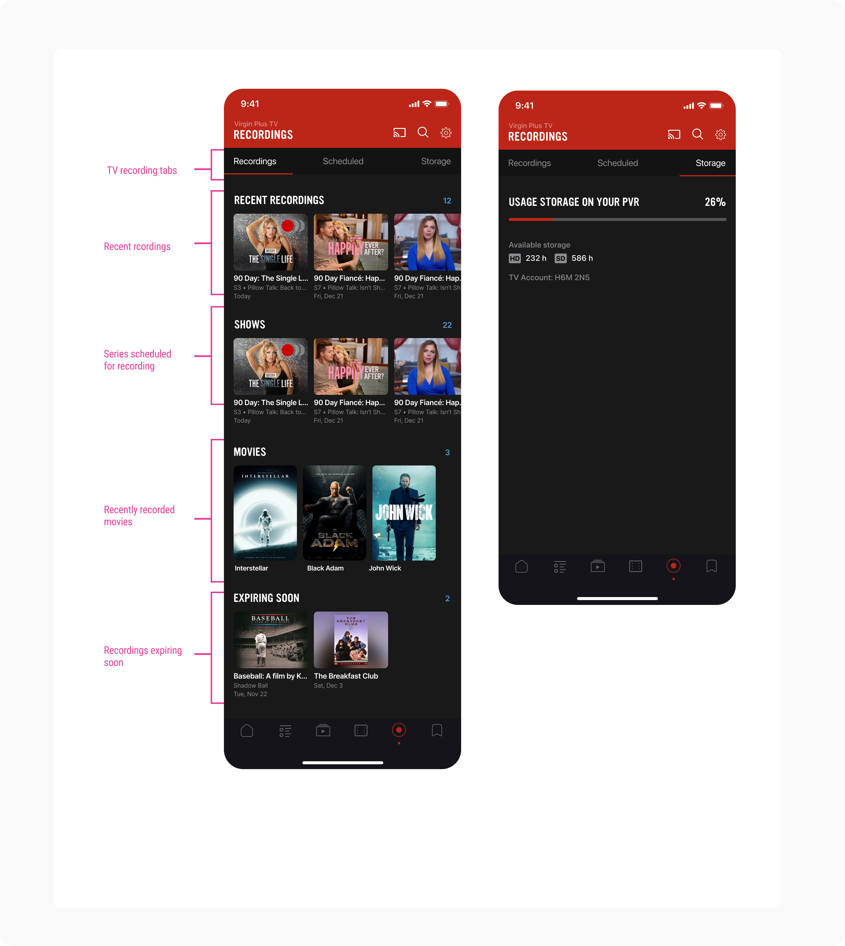 Solution 6: Designing the ability to record from the appTo extend the value of Virgin Plus TV beyond basic streaming, we designed a scalable streaming platform architecture that supported both mobile and TV apps with consistent content libraries, user profiles, and casting infrastructure. The platform enabled seamless synchronization between devices—allowing users to start watching on mobile and continue on TV, or vice versa, without losing their place.